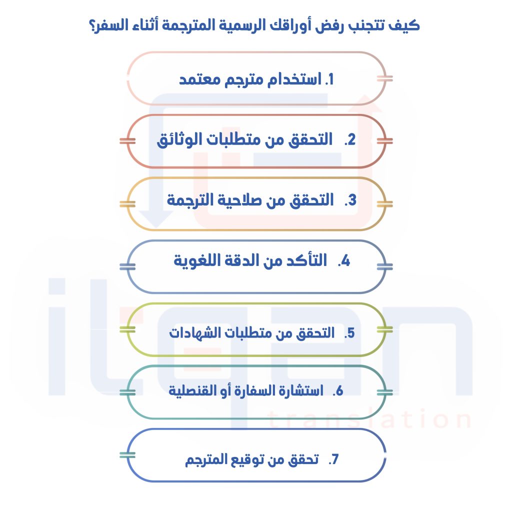 باتباع هذه الإرشادات، يمكنك تقليل فرص رفض الوثائق المترجمة أثناء السفر وضمان قبولها بسلاسة من قبل السلطات المعنية.