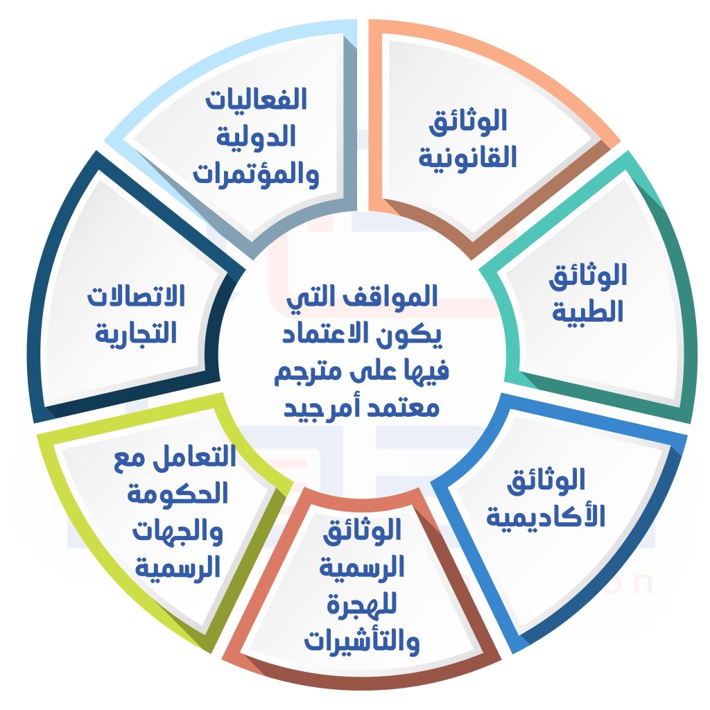 – عندما يكون هناك حاجة إلى ترجمة الوثائق للتعامل مع الجهات الحكومية أو الإدارية، مثل ترجمة الوثائق للشركات أو لأغراض الترخيص.